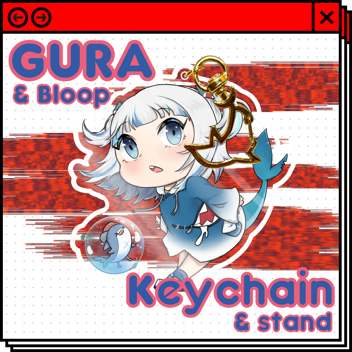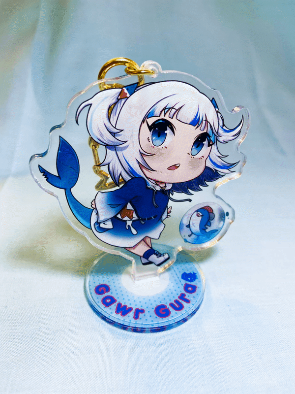 An acrylic keychain with an acrylic base of Gawr Gura with Bloop!!