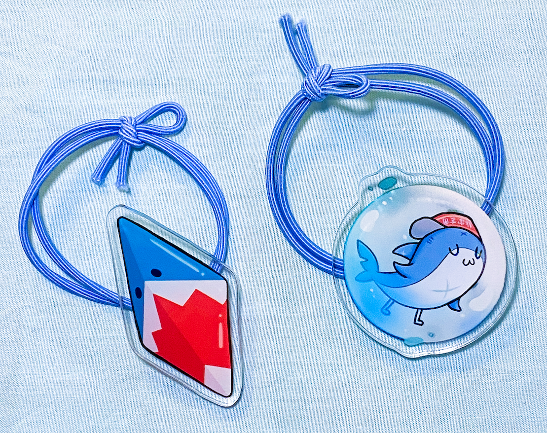 Gawr Gura hair tie set! <3 You have Bloop in a bubble, and Gura's own hair tie!