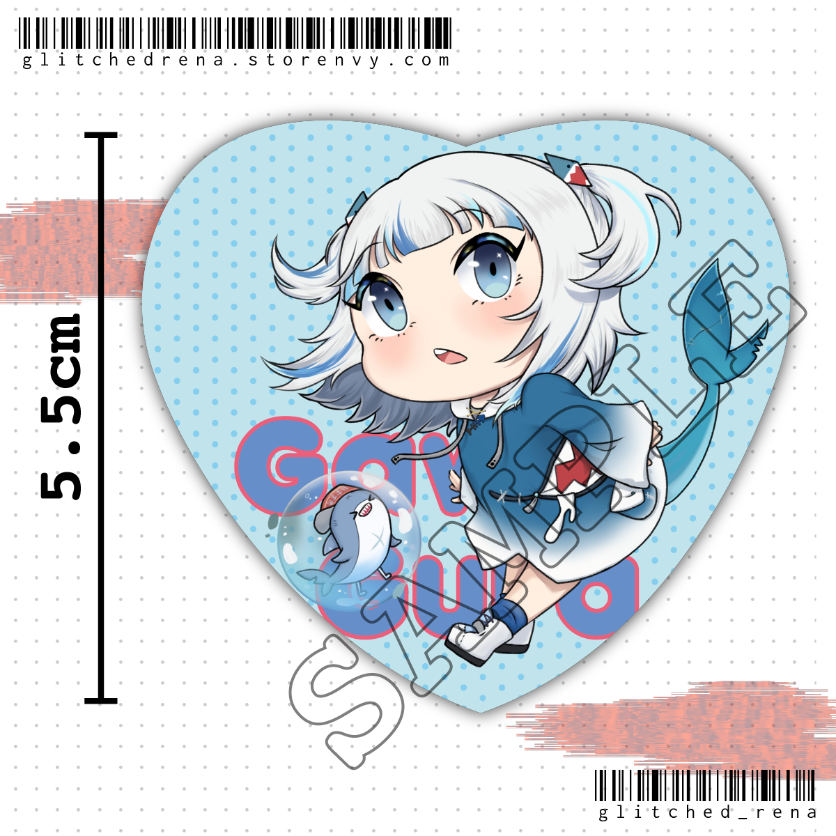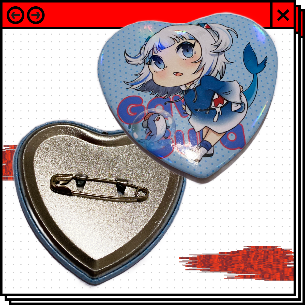 Gawr Gura but in a heart shaped pin <3