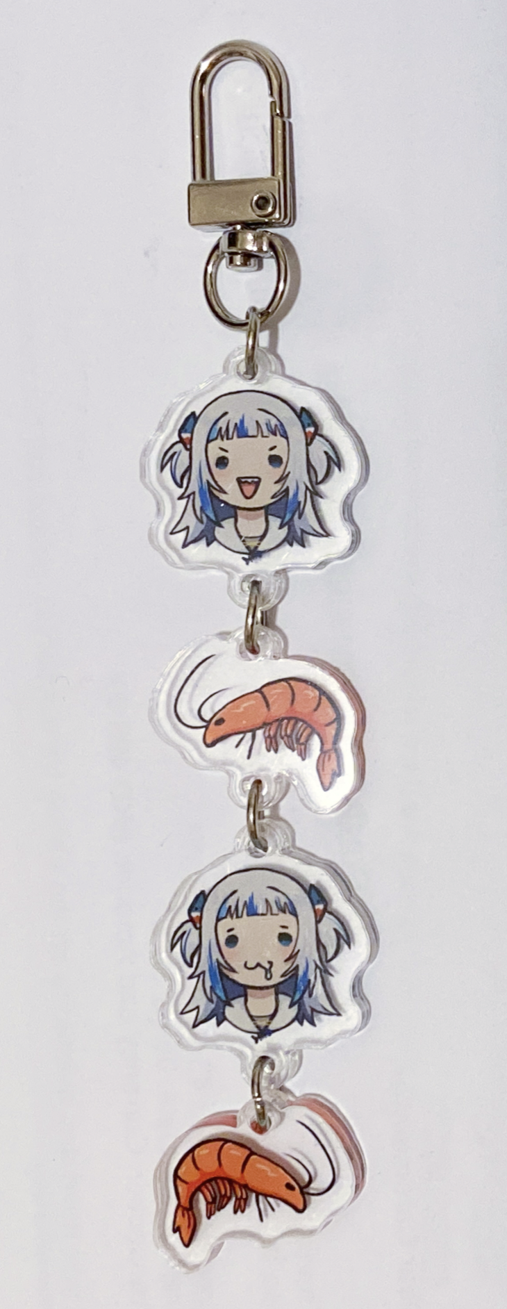 An acrylic charm of Gura and her fans (shrimp)!