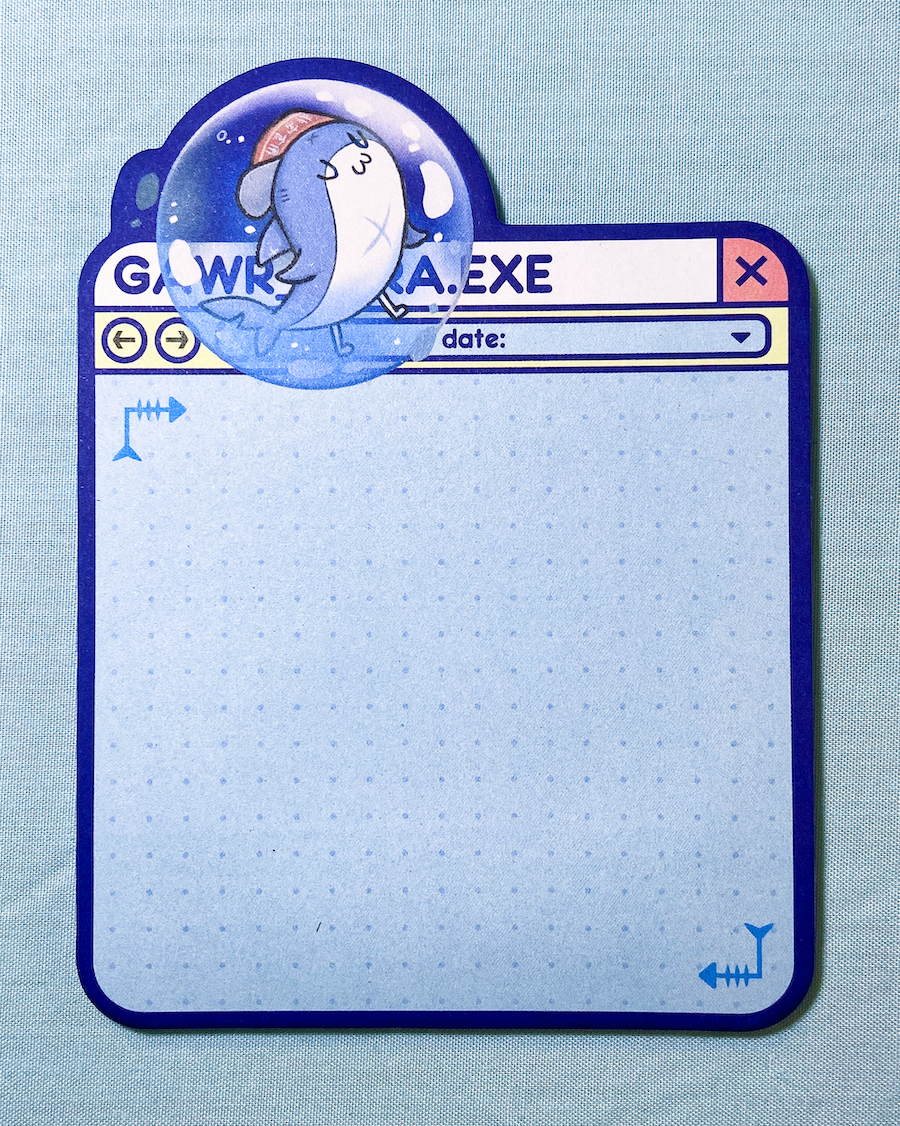 Gawr Gura, but a memo pad!! There are three differently designed memo pads in total. The three of them together are a set.