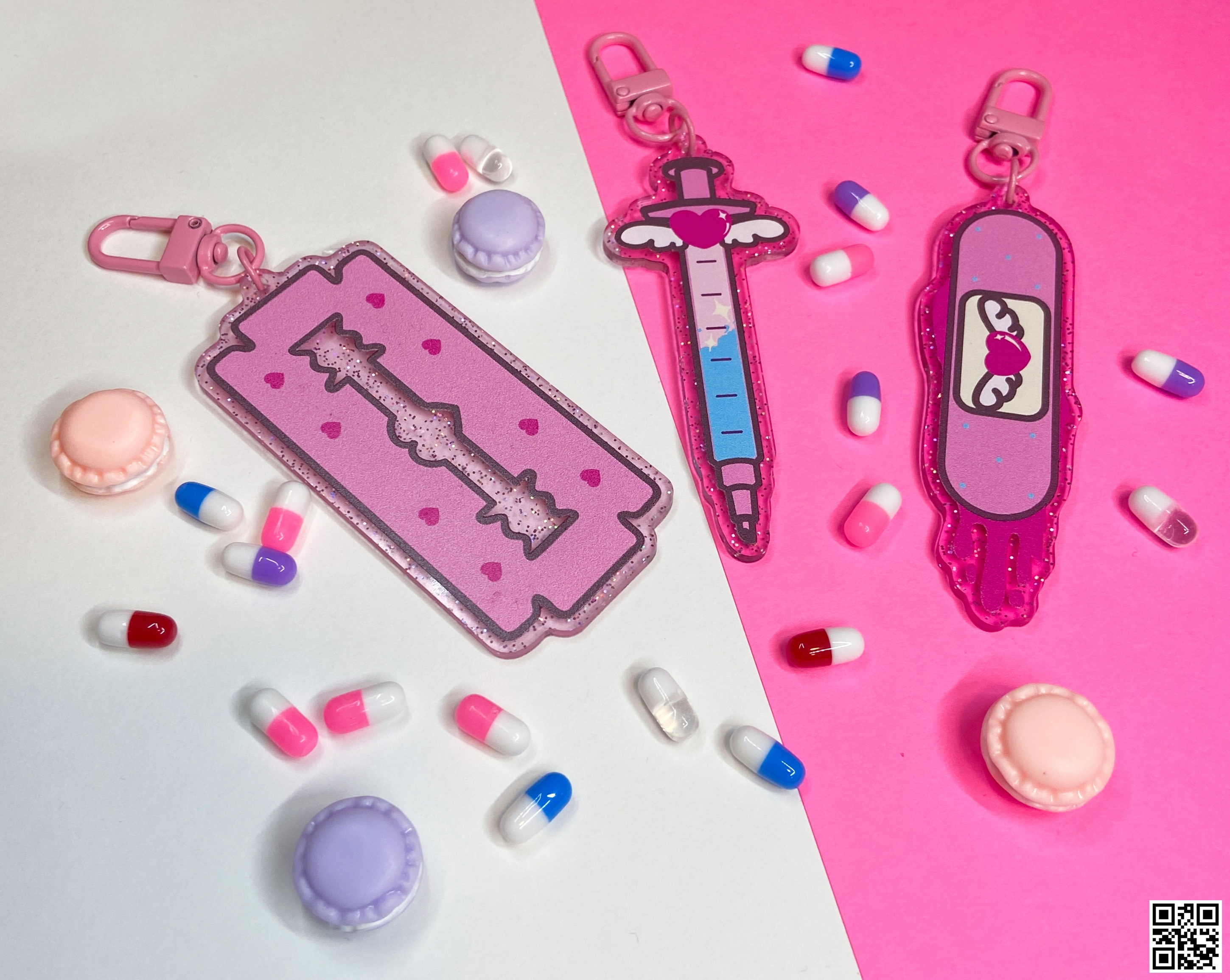 Glittery acrylic keychain inspired by yami kawaii and the MV "Cutter"!