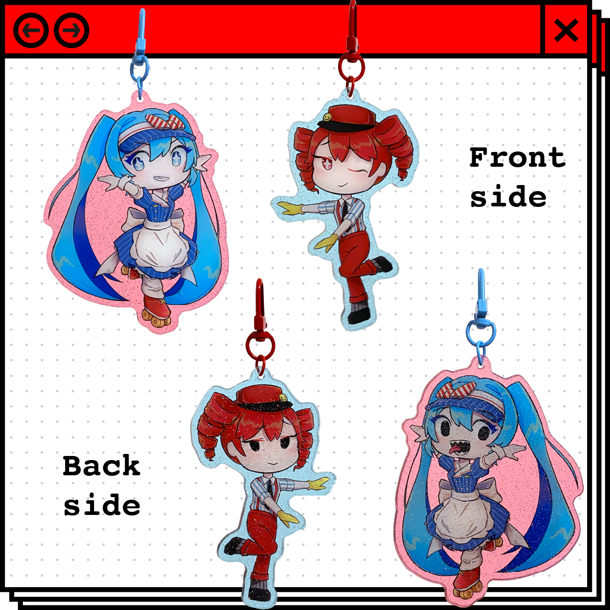 Hatsune Miku and Kasane Teto from Mesmerizer as acrylic keychain!!!!