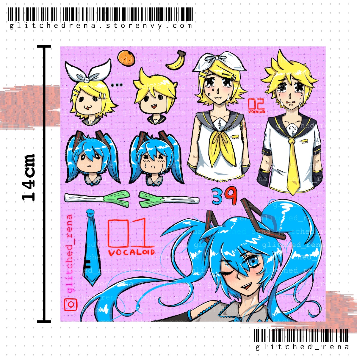 The actual sticker sheet will not have the repeated "glitched_rena" watermark.