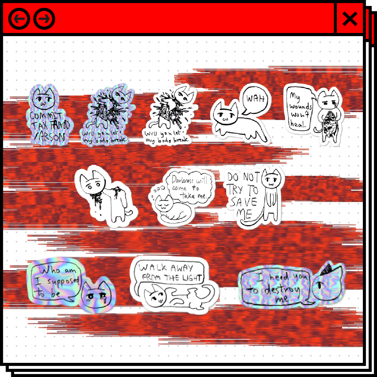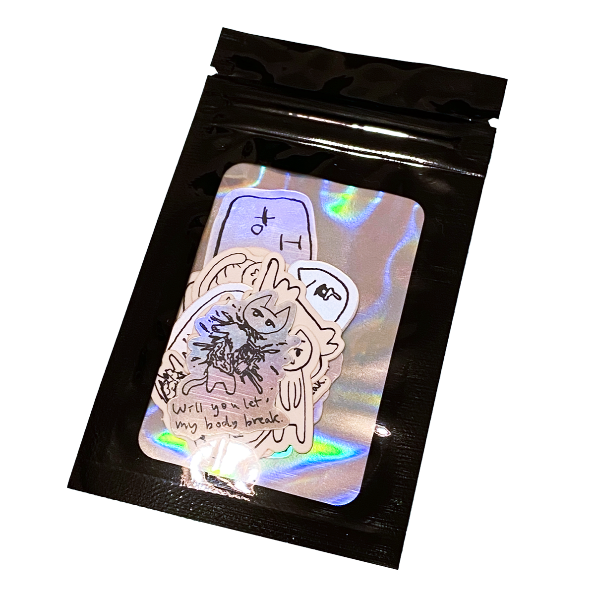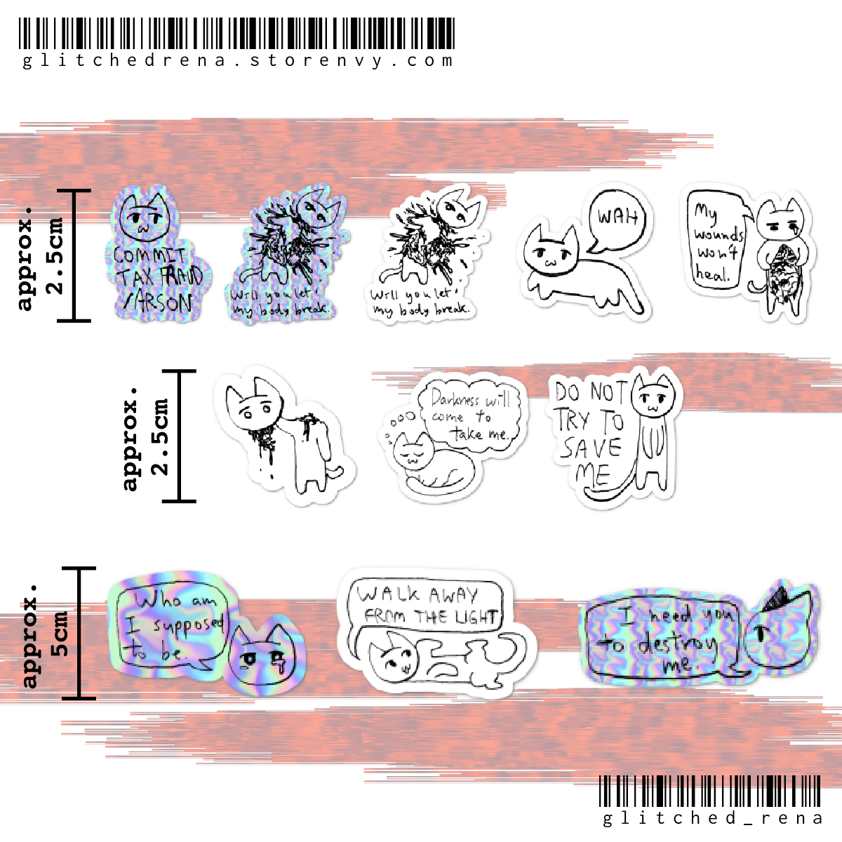 12 different holographic edgy cat stickers in 1 pack! How cute!